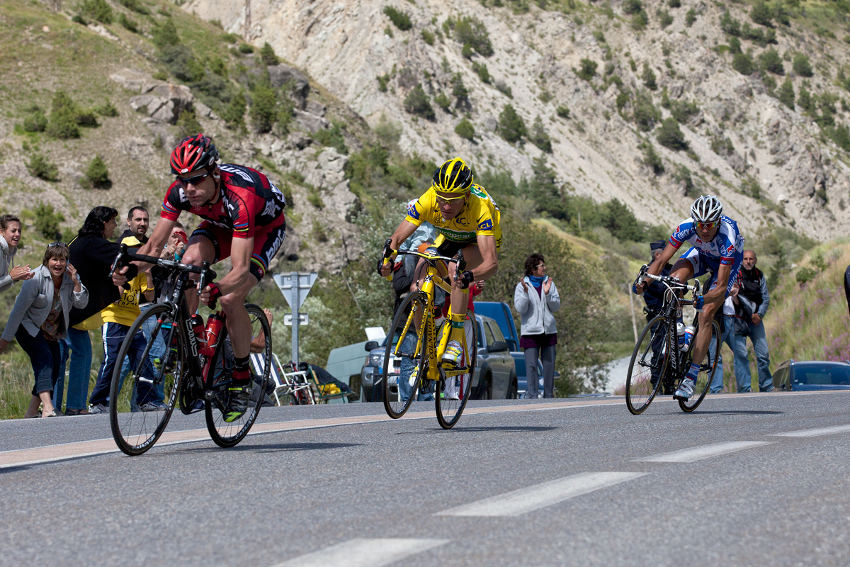 Another wildcard team for this year’s Tour de France, this might be the last year that the team rides under the Europcar banner, a French rental car company. Last year Thomas Voeckler became a media darling after taking stages 10 and 16 in the Tour, and winning the King of the Mountain jersey, while Pierre Rolland took stage 11. Yes, that’s Voeckler doing a wheelie right behind Cadel Evans.